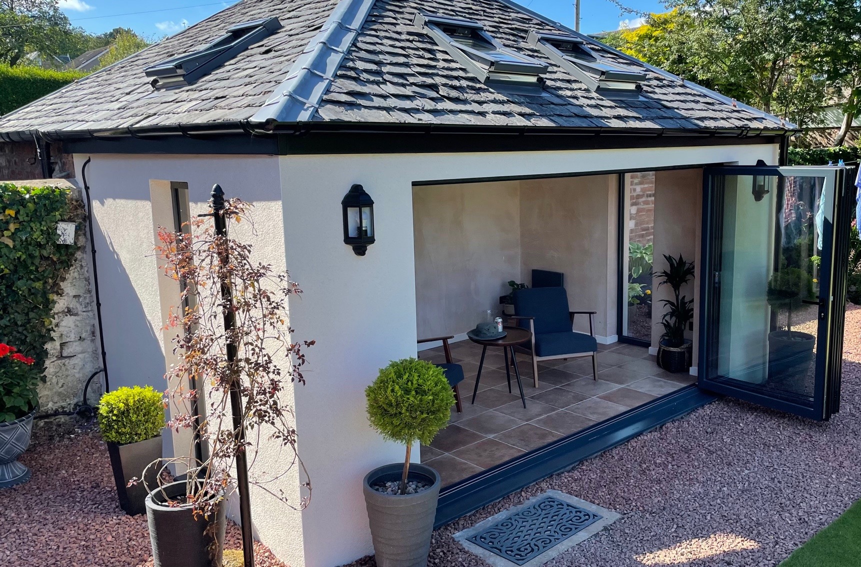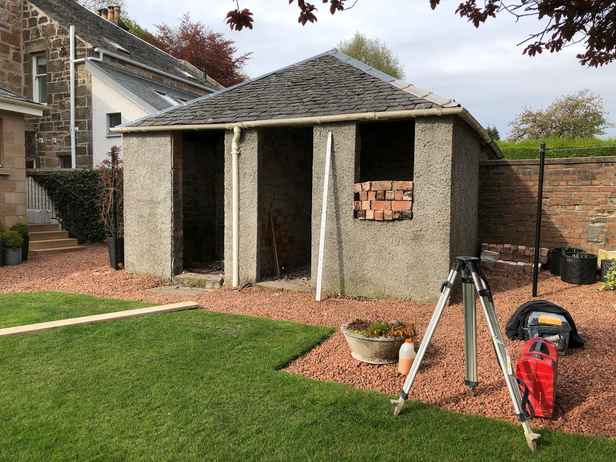 Conversion of an unused outhouse into an insulated, functional and attractive garden room. Bearsden, Glasgow